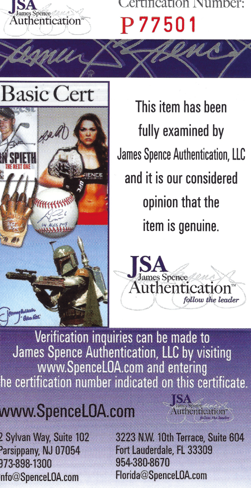 Each autograph is accompanied by its corresponding Certificate of Authenticity (COA), issued by JSA, PSA/DNA, BAS, or our exclusive ICON Witnessed COA. Every certification reflects a meticulous professional authentication process, ensuring unquestioned authenticity and complete confidence in your purchase.