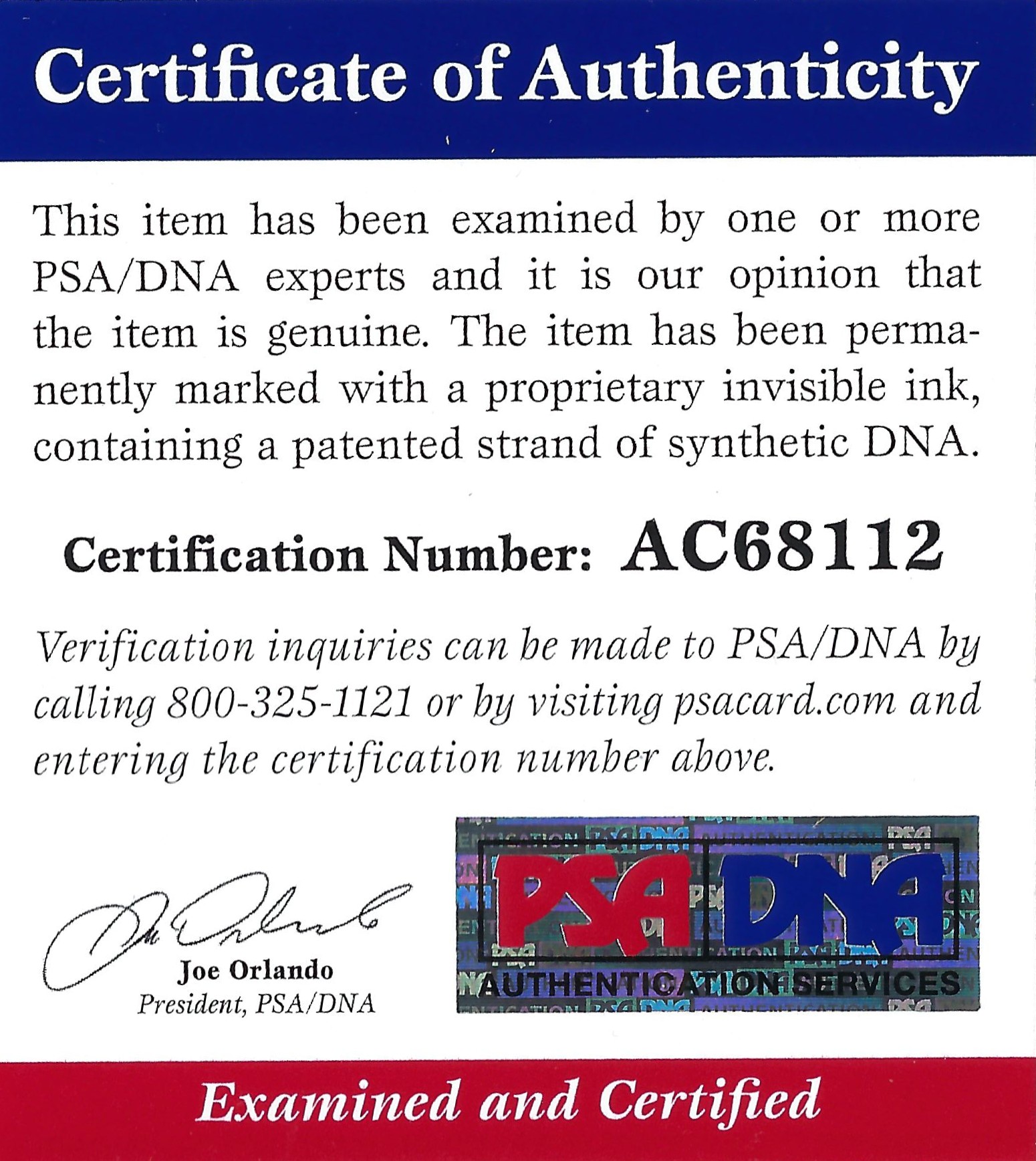 Reviewed by certified memorabilia specialists